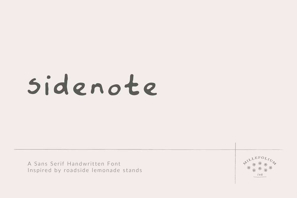 Inspired by roadside lemonade stands, Sidenote is a hand-drawn sans-serif font that feels like a summer afternoon.